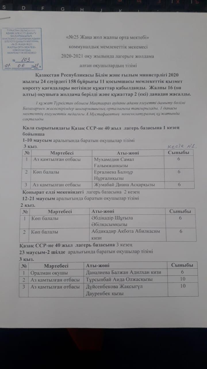 Жазғы сауықтыру лагерь бойынша жұмыстар » "№25 Жаңа жол ЖББМ" КММ